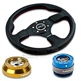 | ✚✚✚ NRG-SRK-140H-RG+012R+200NB, NRG Innovations 12.5" 320mm Black Leather Red Stitch Button Racing Steering Wheel Combo with 6 Hole Short Hub Adapter with Gen 2.0 New Blue Quick Release Kit SRK-140H NRG Quick Release features many options that conventional ball-locking quick release system do not. It is specially engineered with raised sections to prevent the scratching and stretching of the hub while a self locking feature adds increased safety and functionality. Features racing styled for added style and look. Each unit is made from the highest quality aircraft grade aluminum and is anodized for maximum durability and finish.