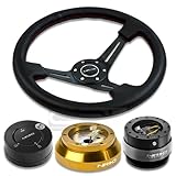 NRGSRK140HRG+200BK+101MB+018R, NRG Innovations 13.78" 350mm 3" Deep Dish Style Black Leather Red Stitch Black Spokes Racing Steering Wheel Combo with 6 Hole Short Hub Adapter with Gen 2.0 Black Quick Release with Matte Black Lock Hub Kit SRK-140H