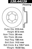 Power Slot 126.44129CSR Slotted Brake RotorExcessive heat can cause resins in your brake pad to vaporize or "outgas." As the brake pad wears, the used friction material turns into a fine dust. This boundary layer of heat, gas and dust builds up between the pad and rotor surfaces and inhibits performance. Here's where Power Slot's slotted brake rotors make a big difference. Power Slot's exclusive Vac-U-Slots are machined into the rotor and help evacuate gasses and dust, shed heat, and keep the brake pad surface clean. And in wet, raining conditions, our Vac-U-Slot helps push water off the braking surface for better stopping power. For most late model truck and SUV applications and select sports cars, we also use a special Power Alloy metallurgy and directional cooling vanes to improve high temperature performance.